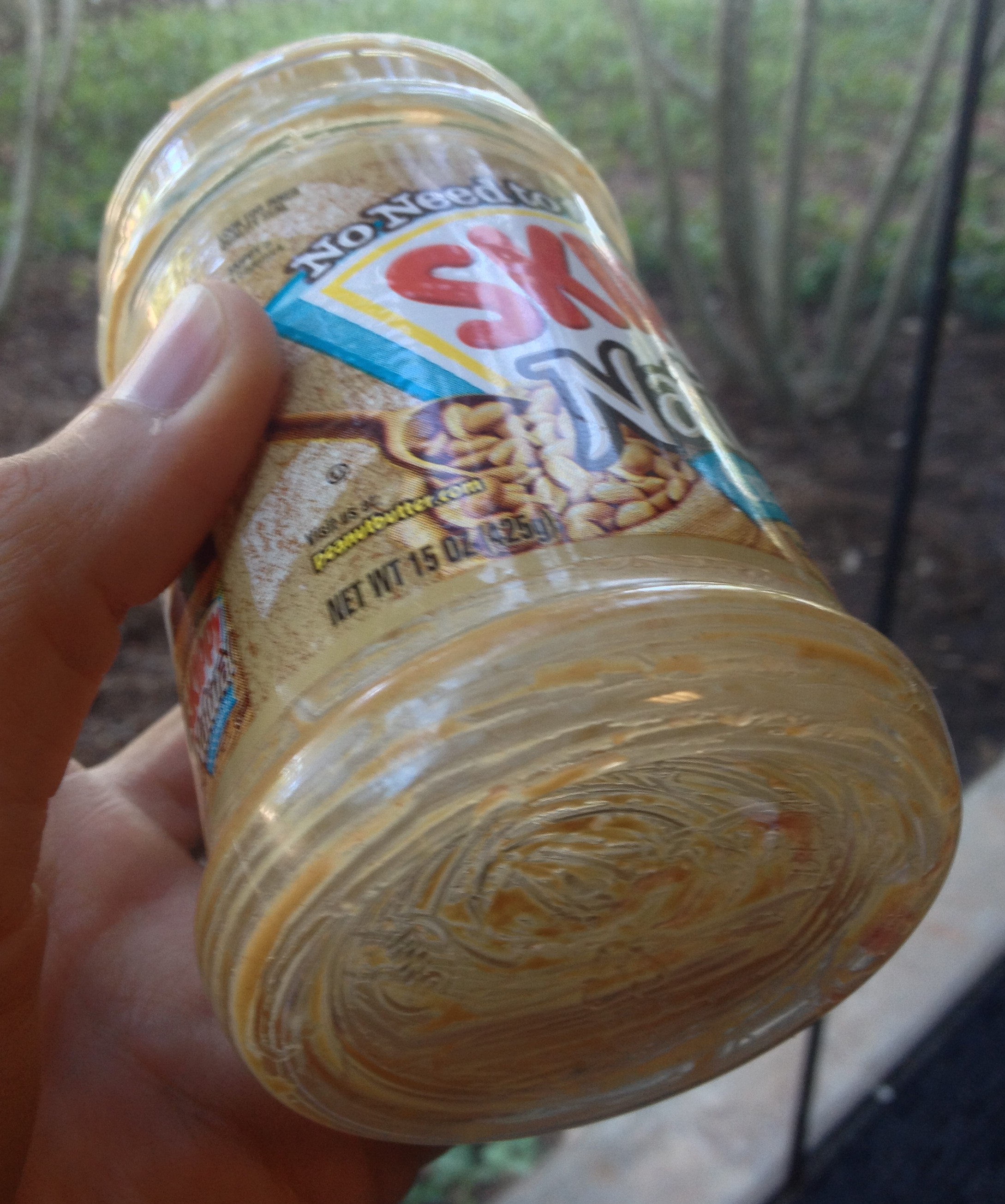I did the best I could to get every last bit of this delicious peanut butter but I think they could make these containers a little bit easier to get the last bit out. I could be wrong though, I’m guessing they need the ridges on the bottom and top for strength. This particular jar was at work so I didn’t have access to all the kitchen utensils I would at home. I’ve used a rubber spatula at home with great success. Not only do I like to not waste any of the peanut butter but it leaves a lot less for me to rise out before recycling the plastic.